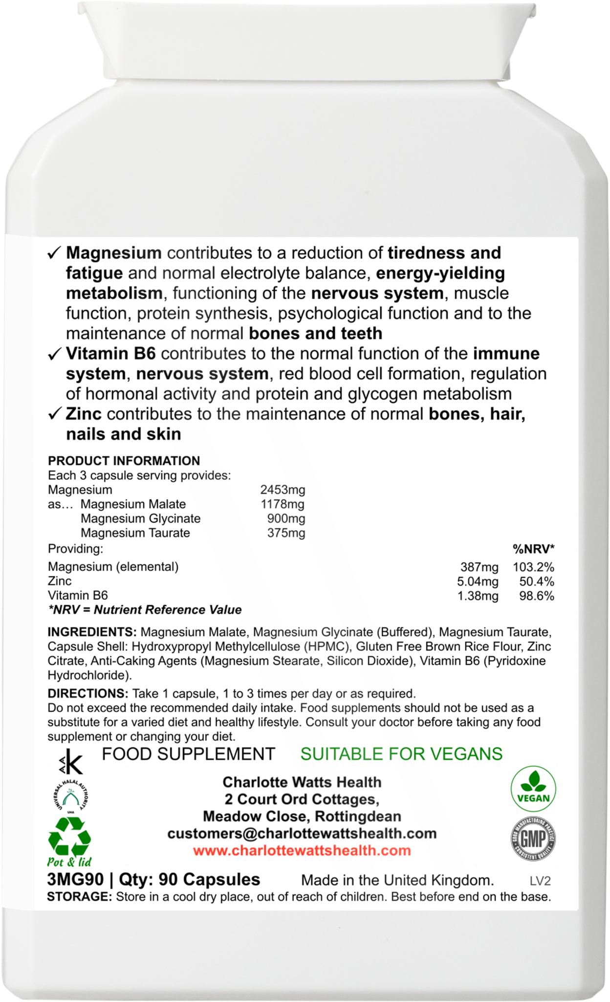 3-in-1 magnesium complex, plus zinc and vitamin B6.
